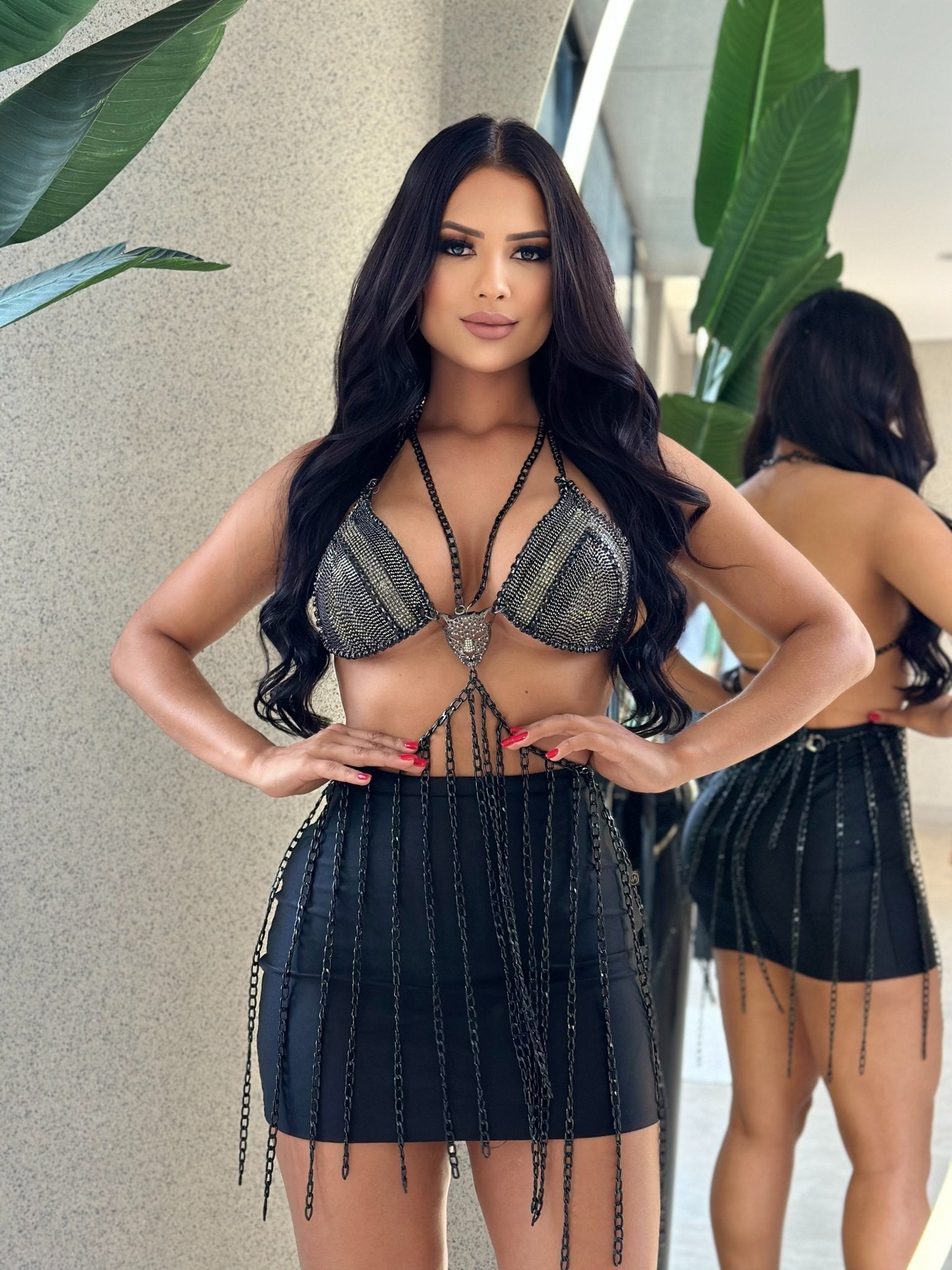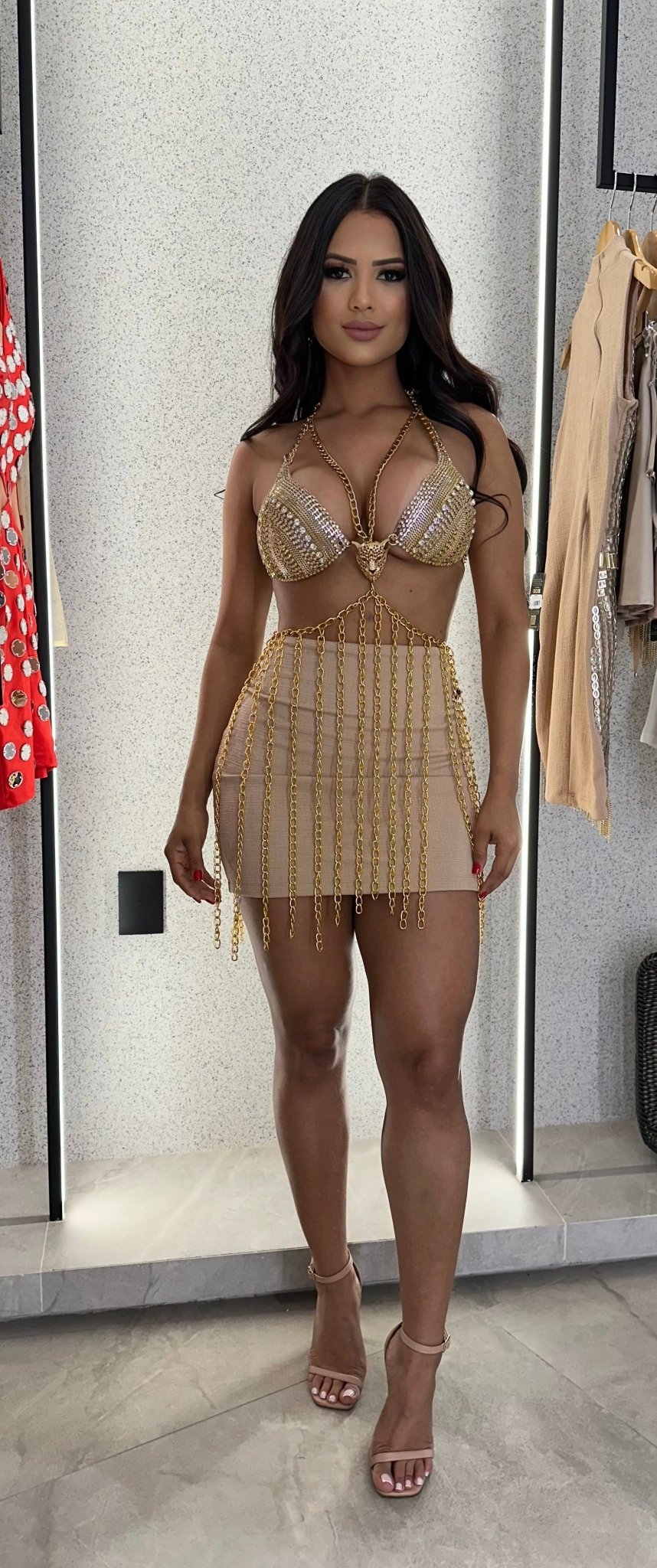 Tejido: Metal / Strass / Pedrería / Cadenas / Copa (bojo) / Incluye falda
