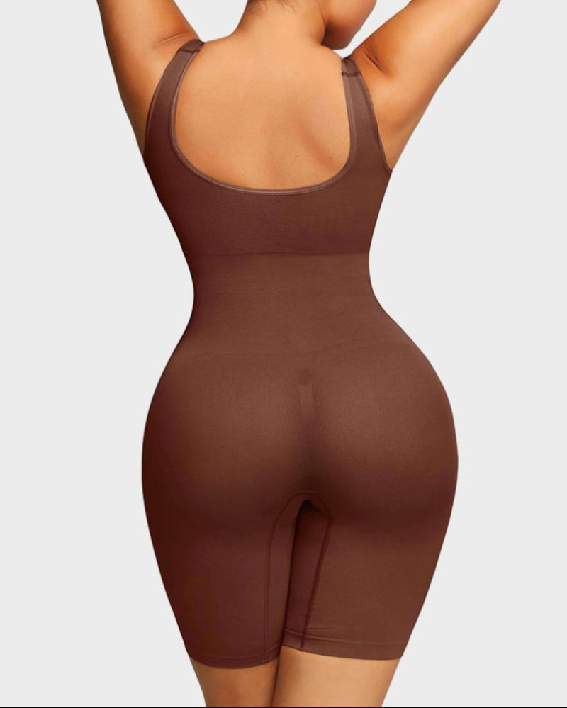 3. Sube la parte superior de la faja moldeadora y coloca los tirantes sobre ambos brazos.